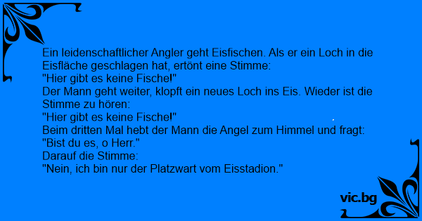 Ein leidenschaftlicher Angler geht Eisfischen. Als er ein Loch in die Eisfläche geschlagen hat, ertönt eine Stimme: