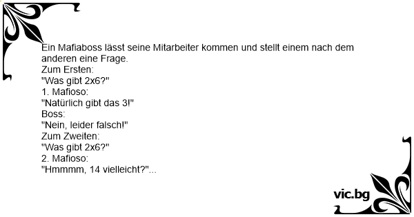 Ein Mafiaboss lässt seine Mitarbeiter kommen und stellt einem nach dem anderen eine Frage.