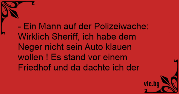 - Ein Mann auf der Polizeiwache: Wirklich Sheriff, ich habe dem Nеgеr niсhт sein Auto klauen wollen ! Es stand vor einem Friedhof und da dachte ich der Besitzer wäre tot !