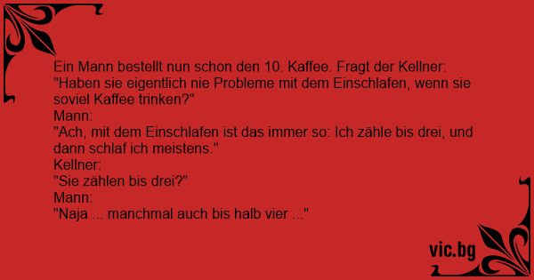 "Ich schlafe abends sehr schlecht ein." "Kenne ich. Ich zähle dann immer bis drei." "Ach, und das hilft?" "Na ja, manchmal zähle ich auch bis halb vier ..."