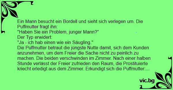 Ein Mann besucht ein Bordell und sieht sich verlegen um. Die Puffmutter fragt ihn: