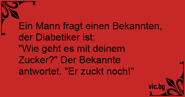 "Wie geht es mit deinem Zucker?" Der Bekannte antwortet. "Er zuckt noch!"