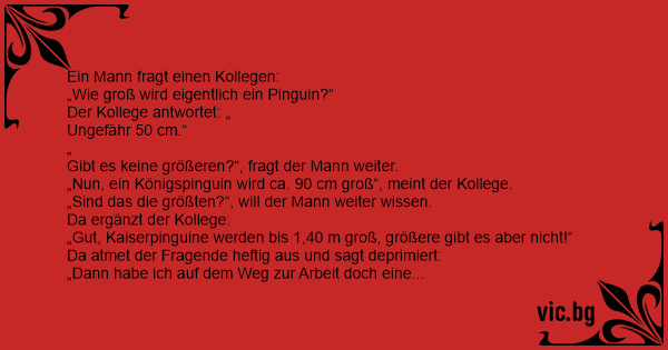„Nun, ein Königspinguin wird ca. 90 cm groß“, meint der Kollege.