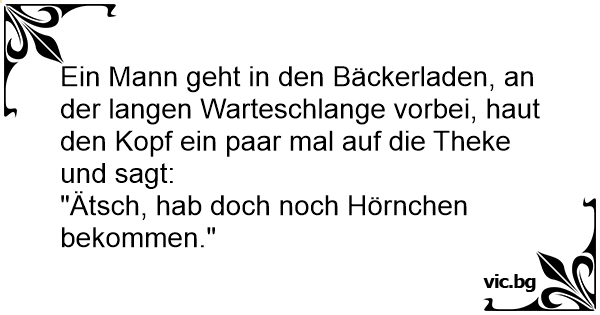 Ein Mann geht in den Bäckerladen, an der langen Warteschlange vorbei, haut den Kopf ein paar mal auf die Theke und sagt: