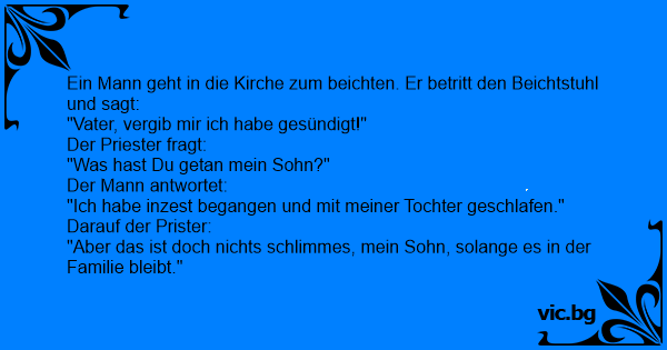 Ein Mann geht in die Kirche zum beichten. Er betritt den Beichtstuhl und sagt: