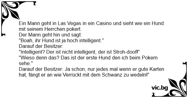 Ein Mann geht in Las Vegas in ein Casino und sieht wie ein Hund mit seinem Herrchen pokert.