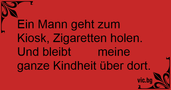 Ein Mann geht zum Kiosk, Zigaretten holen. Und bleibt meine ganze Kindheit über dort.