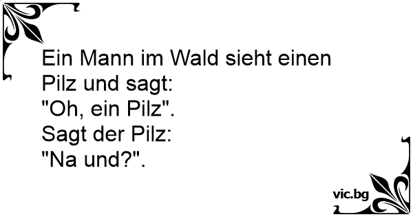 Ein Mann im Wald sieht einen Pilz und sagt: