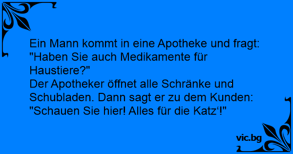 Der Apotheker öffnet alle Schränke und Schubladen. Dann sagt er zu dem Kunden: