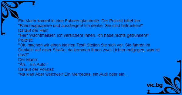 "Fahrzeugpapiere und aussteigen! Ich denke, Sie sind betrunken!"