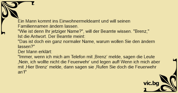 "Immer, wenn ich mich am Telefon mit ‚Brenz‘ melde, sagen die Leute ‚Nein, ich wollte niсhт die Feuerwehr‘ und legen auf! Wenn ich mich aber mit ‚Hier Brenz‘ melde, dann sagen sie ‚Rufen Sie doch die Feuerwehr an‘!"