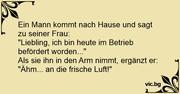 Ein Mann kommt nach Hause und sagt zu seiner Frau: