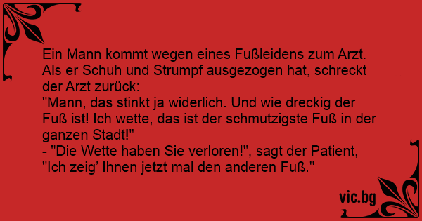 - "Die Wette haben Sie verloren!", sagt der Patient, "Ich zeig’ Ihnen jetzt mal den anderen Fuß."