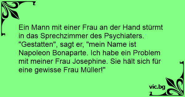 "Gestatten", sagt er, "mein Name ist Napoleon Bonaparte. Ich habe ein Problem mit meiner Frau Josephine. Sie hält sich für eine gewisse Frau Müller!"
