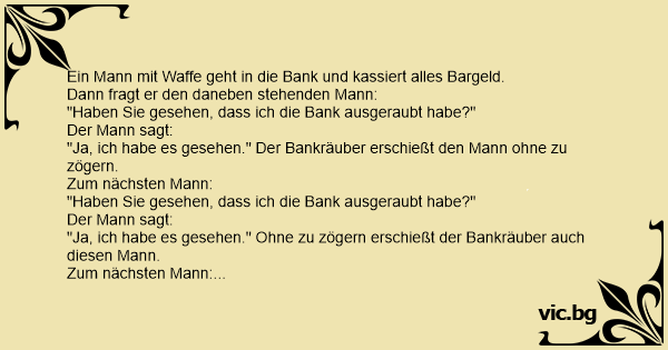 "Haben Sie gesehen, dass ich die Bank ausgeraubt habe?"