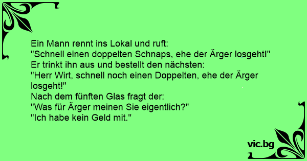 "Herr Wirt, schnell noch einen Doppelten, ehe der Ärger losgeht!"