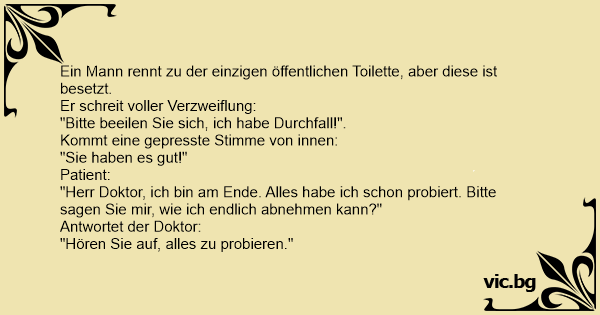 "Bitte beeilen Sie sich, ich habe Durchfall!".