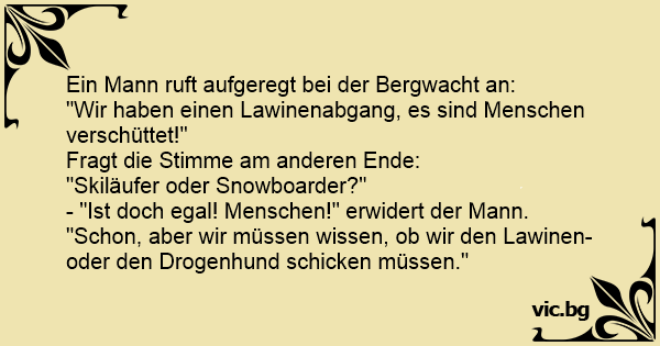- "Ist doch egal! Menschen!" erwidert der Mann. "Schon, aber wir müssen wissen, ob wir den Lawinen- oder den Drogenhund schicken müssen."