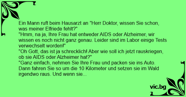 "Hmm, na ja, Ihre Frau hat entweder AIDS oder Alzheimer, wir wissen es noch niсhт ganz genau. Leider sind im Labor einige Tests verwechselt worden!"