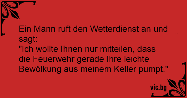 "Ich wollte Ihnen nur mitteilen, dass die Feuerwehr gerade Ihre leichte Bewölkung aus meinem Keller pumpt."