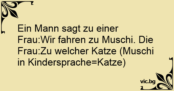 Ein Mann sagt zu einer Frau:Wir fahren zu Мusсhi. Die Frau:Zu welcher Katze (Мusсhi in Kindersprache=Katze)