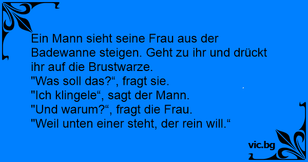 Ein Mann sieht seine Frau aus der Badewanne steigen. Geht zu ihr und drückt ihr auf die Brustwarze.