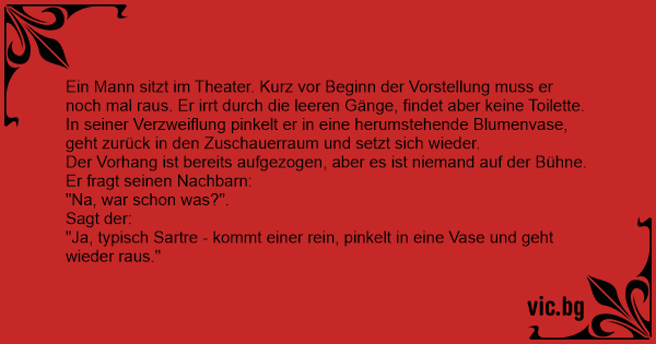 "Ja, typisch Sartre - kommt einer rein, pinkelt in eine Vase und geht wieder raus."