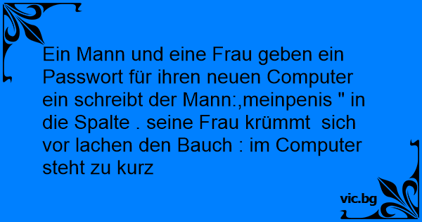 Ein Mann und eine Frau geben ein Passwort für ihren neuen Computer ein schreibt der Mann:,meinpenis " in die Spalte . seine Frau krümmt sich vor lachen den Bauch : im Computer steht zu kurz