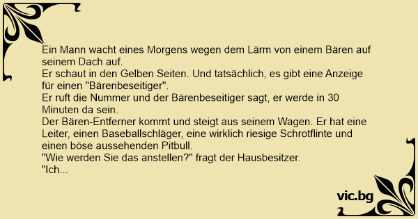 "Tja, wenn der Bär mich vom Dach haut, dann schieße auf den Hund."