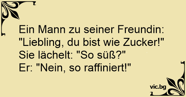 Ein Mann zu seiner Freundin: "Liebling, du bist wie Zucker!"