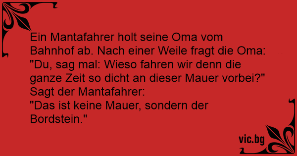 Ein Mantafahrer holt seine Oma vom Bahnhof ab. Nach einer Weile fragt die Oma: