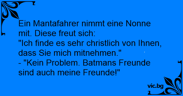 Ein Mantafahrer nimmt eine Nonne mit. Diese freut sich: