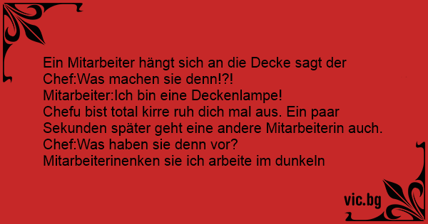 Ein Mitarbeiter hängt sich an die Decke sagt der Chef:Was machen sie denn!?!