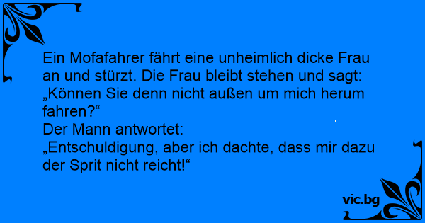 Ein Mofafahrer fährt eine unheimlich dicke Frau an und stürzt. Die Frau bleibt stehen und sagt: