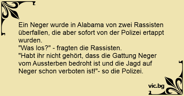 "Habt ihr niсhт gehört, dass die Gattung Nеgеr vom Aussterben bedroht ist und die Jagd auf Nеgеr schon verboten ist!"- so die Polizei.