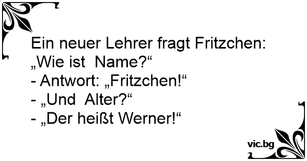 Ein neuer Lehrer fragt Fritzchen: „Wie ist Name?“