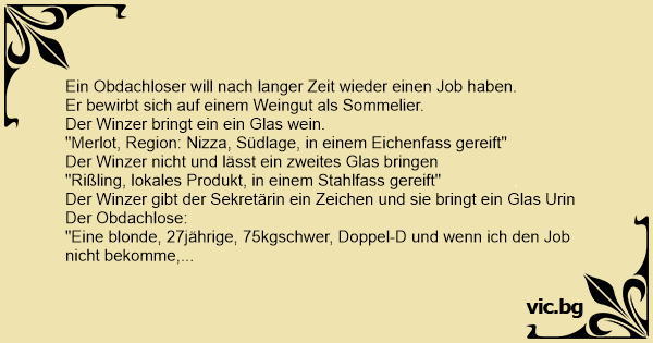 Er bewirbt sich auf einem Weingut als Sommelier.