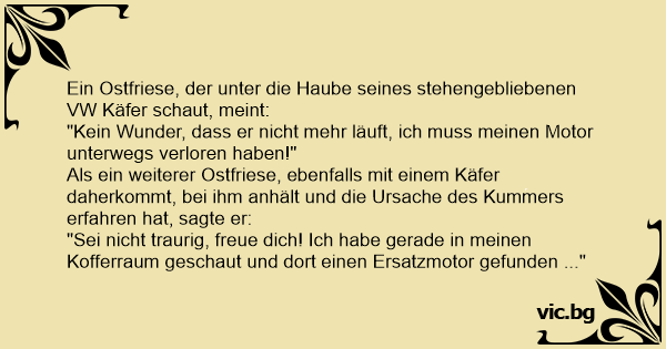 Als ein weiterer Ostfriese, ebenfalls mit einem Käfer daherkommt, bei ihm anhält und die Ursache des Kummers erfahren hat, sagte er: