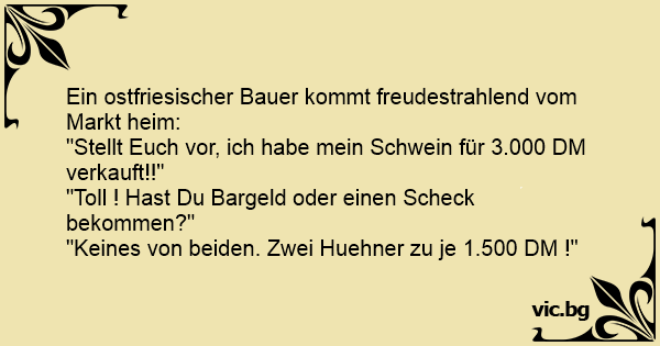 Ein ostfriesischer Bauer kommt freudestrahlend vom Markt heim: