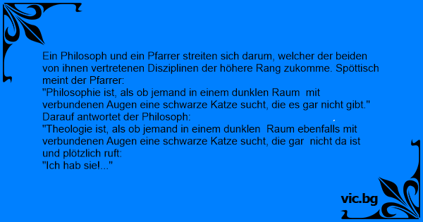Ein Philosoph und ein Pfarrer streiten sich darum, welcher der beiden von ihnen vertretenen Disziplinen der höhere Rang zukomme. Spöttisch meint der Pfarrer: