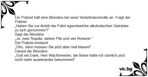 „Gott sei Dank, Herr Wachtmeister, die Beine hätte ich nämlich jetzt niсhт mehr auseinander bekommen!“