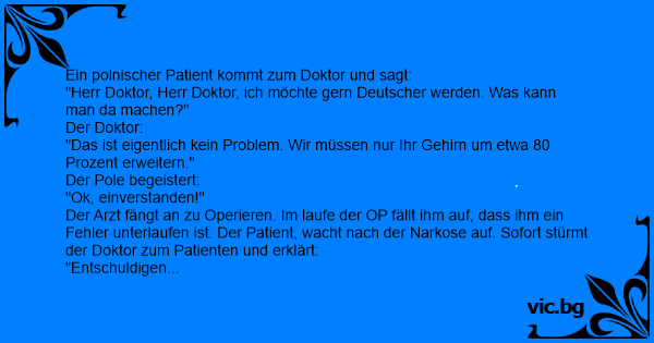 Ein polnischer Patient kommt zum Doktor und sagt: