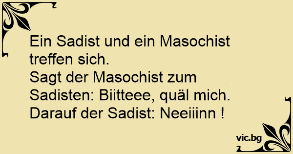 Sagt der Маsосhisт zum Sadisten: Biitteee, quäl mich.