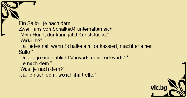 „Ja, jedesmal, wenn Schalke ein Tor kassiert, macht er einen Salto.“