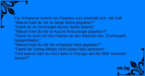 Ein Schwarzer kommt ins Paradies und unterhält sich mit Gott: