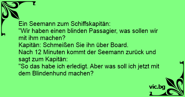 Nach 12 Minuten kommt der Seemann zurück und sagt zum Kapitän: