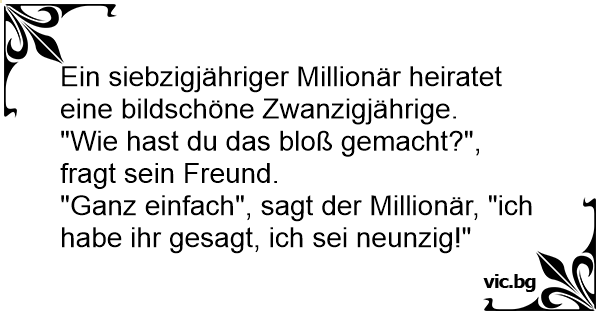 "Ganz einfach", sagt der Millionär, "ich habe ihr gesagt, ich sei neunzig!"