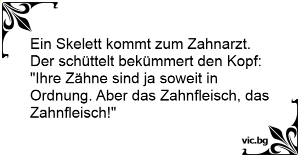 Ein Skelett kommt zum Zahnarzt. Der schüttelt bekümmert den Kopf: