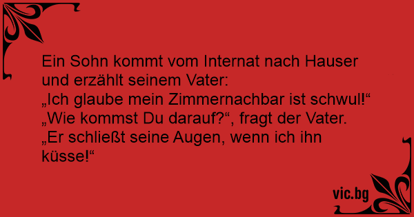 „Wie kommst Du darauf?“, fragt der Vater. „Er schließt seine Augen, wenn ich ihn küsse!“