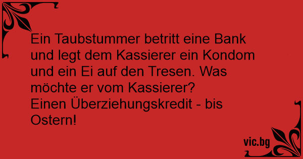 Ein Taubstummer betritt eine Bank und legt dem Kassierer ein Kondom und ein Ei auf den Tresen. Was möchte er vom Kassierer?